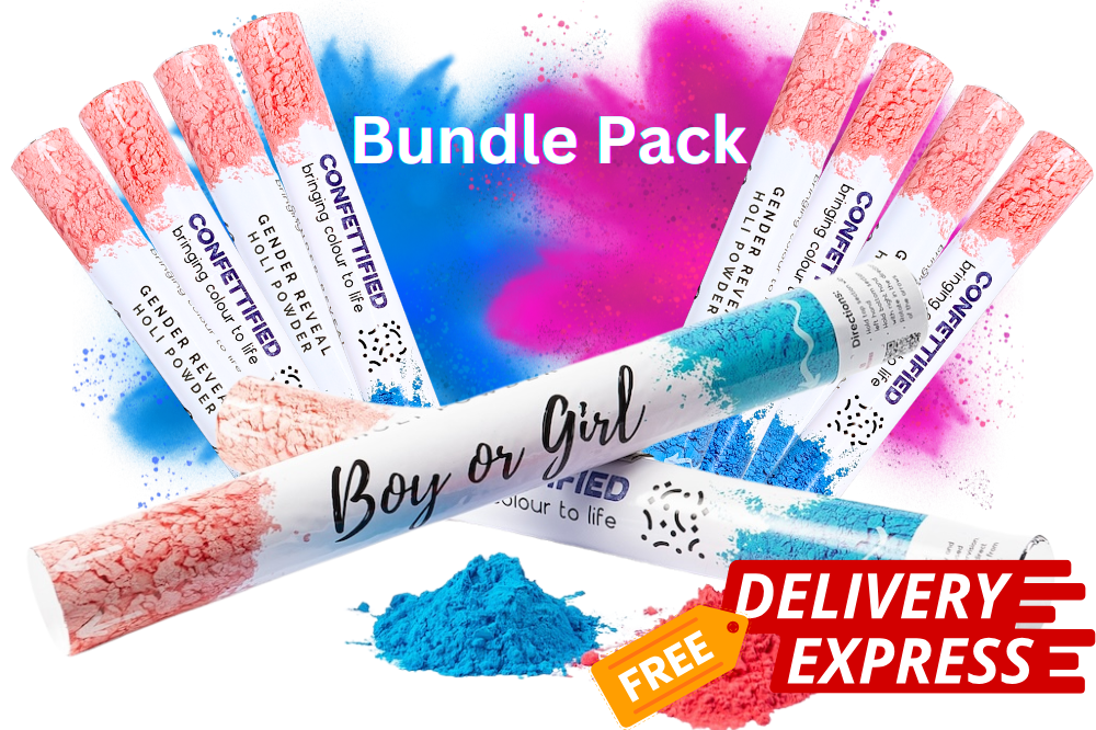 Our Surprise Colour (hidden) confetti cannon launcher/popper is perfect for a Gender Reveal with friends and family.